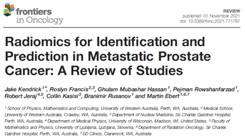 ACQI-affiliated PhD candidate Jake Kendrick has published a review of studies that have examined methods for predicting the outcomes of treatment for metastatic prostate cancer using imaging. This rapidly-evolving field is offering to facilitate patient-specific prognosis, the ability to intervene earlier as disease progresses and the opportunity to make patient care more cost effective.